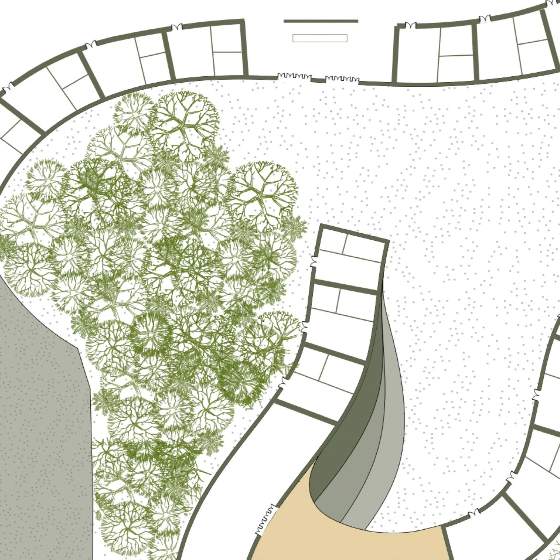 The open space diagram serves to further illustrate the “in-between spaces” or in other words, the spaces that are created as a result of the new construction. Often overlooked, these spaces presented an opportunity for me to capitalize on unused areas and transform them into green oases.