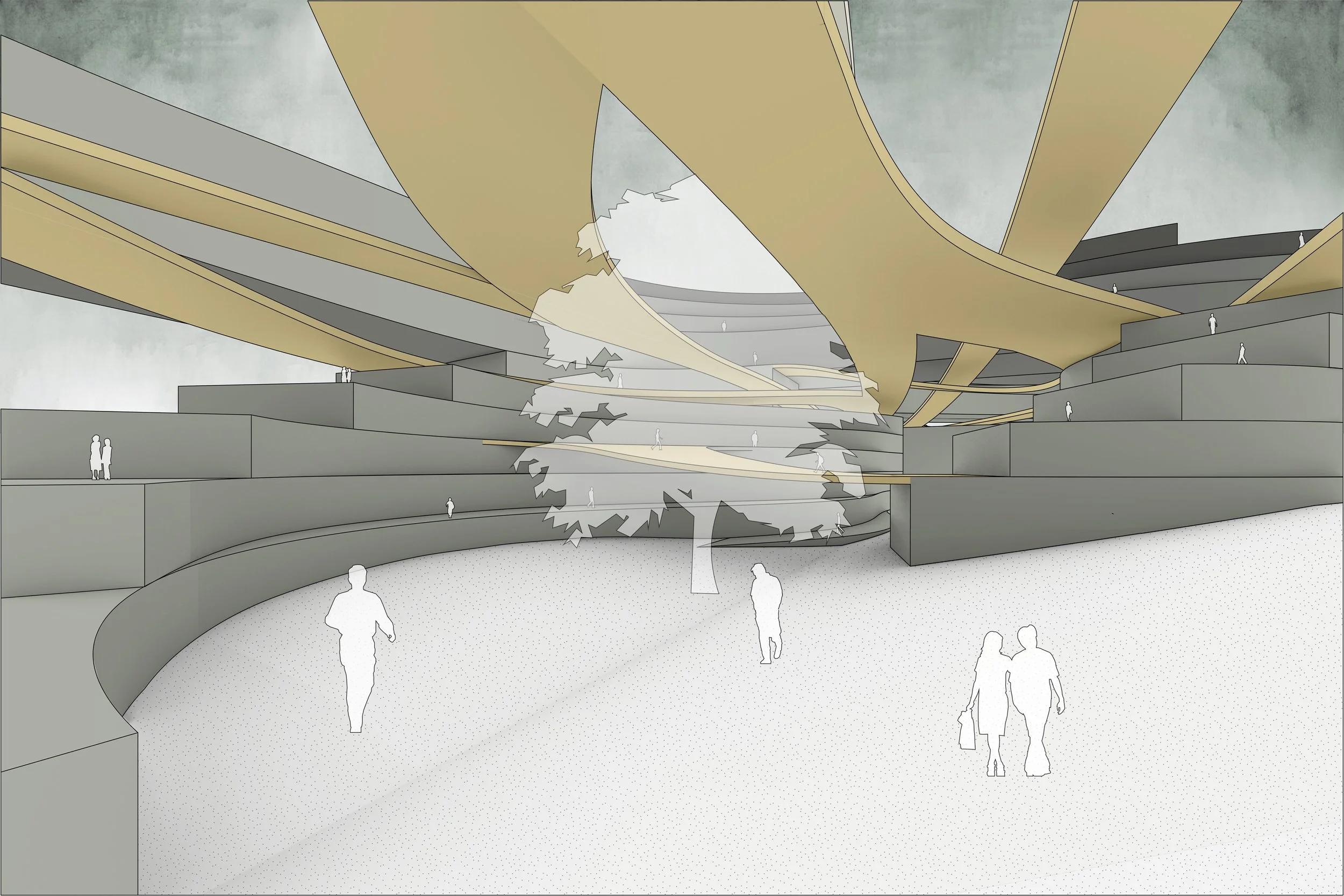 The primary objective is to establish a network of pedestrian ramps that not only grant convenient access to various structures but also transform into an integral part of the buildings. This building-bridge integration blurs the lines between where pedestrian ramps conclude and the actual structures commence, ensuring a seamless blend. Furthermore, the buildings serve as structural supports for these bridges, fostering a symbiotic relationship between form and function. The ultimate vision is to create dynamic and vibrant pedestrian paths that extend beyond mere utility, offering an engaging and entertaining experience for those utilizing the transport infrastructure. In doing so, the project aims to promote pedestrian transportation, reduce reliance on automobiles, and cultivate an intriguing and enjoyable environment for its inhabitants.